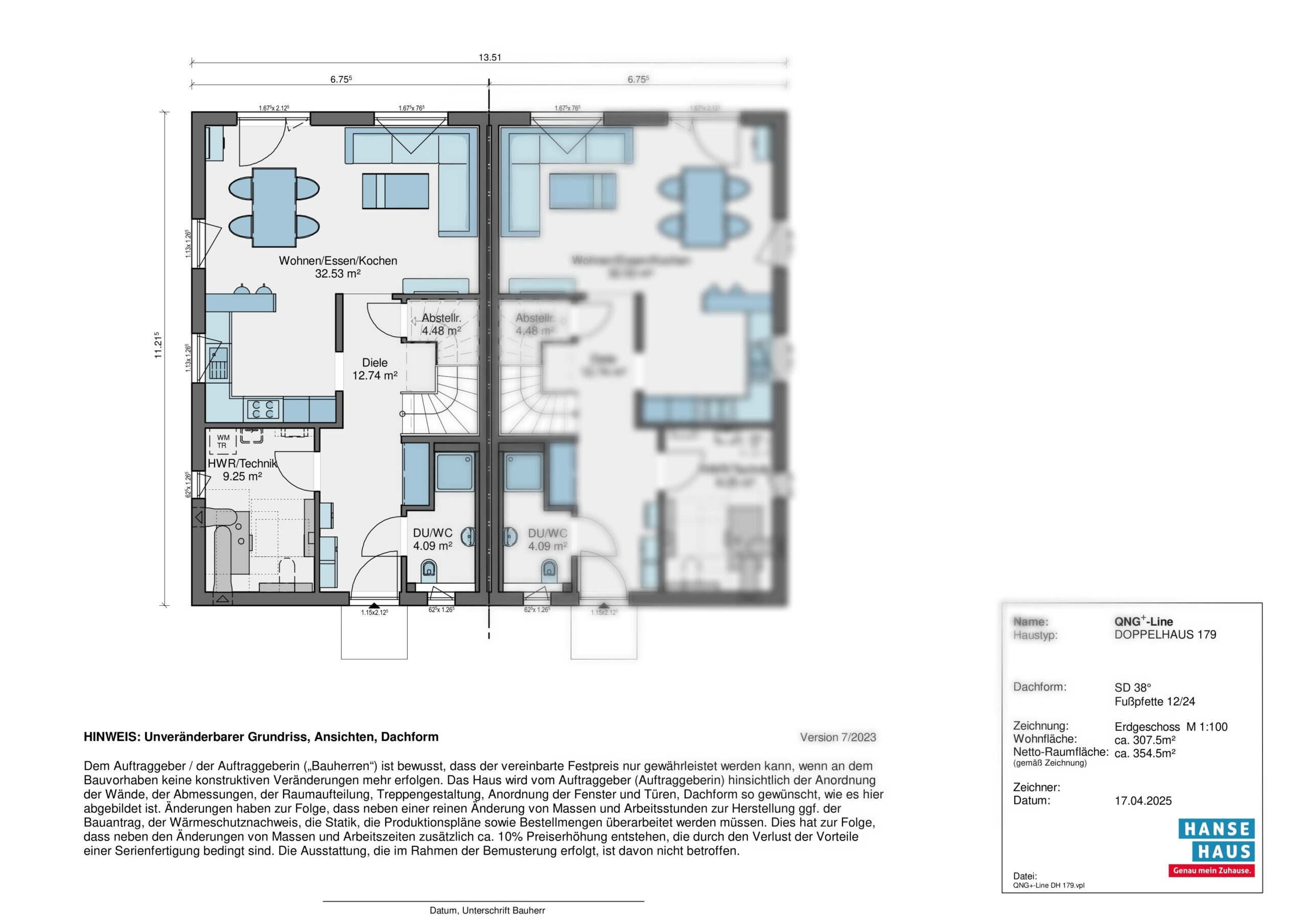 Der offene Wohn- und Essbereich im Erdgeschoss bildet das Herzstück des Hauses. Große Fenster öffnen den Blick in den Garten und schaffen eine helle, einladende Atmosphäre. Das Gäste-WC kann optional zu einem Duschbad erweitert werden – ideal für Familien oder Besucher. Ein Hauswirtschafts- und Technikraum ergänzt das Raumangebot sinnvoll.