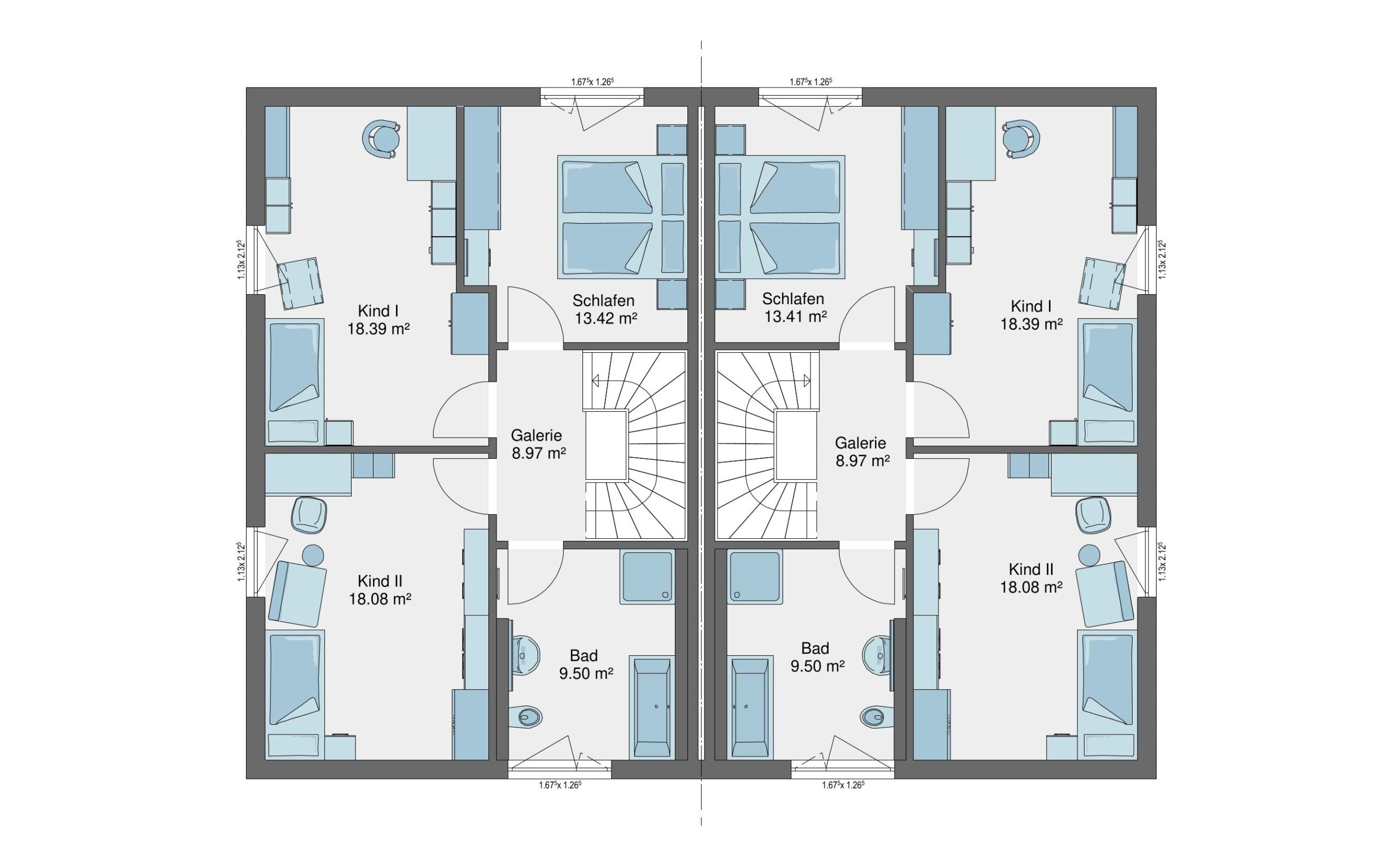 Im Obergeschoss erwarten Sie ein ruhiges Schlafzimmer, zwei großzügige Kinderzimmer mit viel Platz zum spielen sowie ein modernes Familien-Bad mit Dusche und Badewanne.